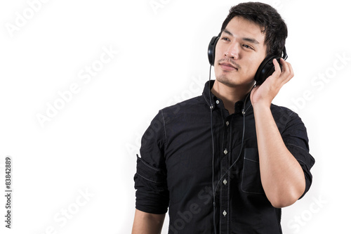 Isolated asian man with headset