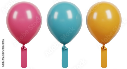Isolated Balloons arranged in a row, decorations with pink, blue and yellow color for party events