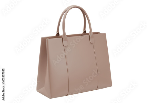 Isolated Beige Leather Tote Bag Fashion Accessory