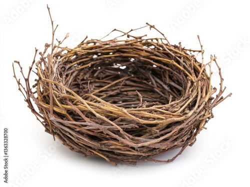 Isolated Bird Nest Made of Twigs and Branches on White Background