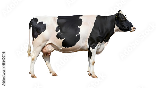 Isolated black and white holstein cow standing side view dairy farm animal cattle livestock agriculture 100 on transparent background