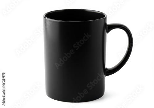 Isolated black ceramic mug with handle on a white background for hot beverages