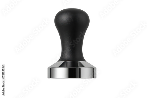 Isolated black coffee tamper on transparent background, shiny metal base