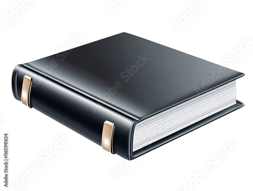 Isolated Black Leather Book with Gold Details