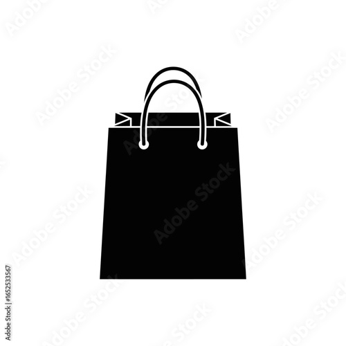 Isolated black shopping bag with handles on a white background in a simple vector illustration