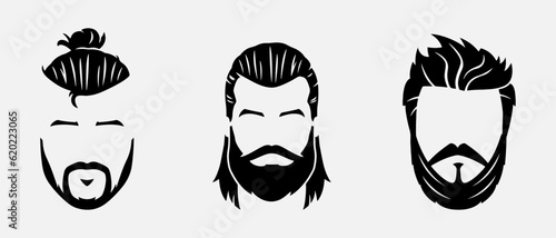 isolated black silhouette of man hairstyle , vector collection