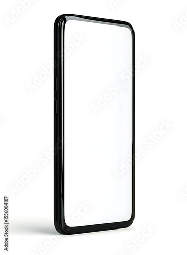 Isolated black smartphone with blank white screen on a white background view