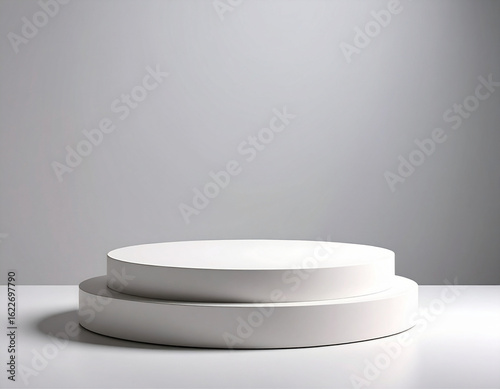 Isolated blank white cosmetic podium with a white plastic container and a metal jar