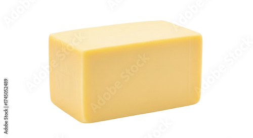 Isolated block of cheddar cheese for cooking and eating, culinary ingredient, dairy product