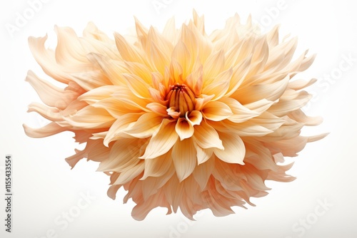 Isolated Blooming Peach Dahlia, Featuring Multiple Layers of Petals on a Clean White Background