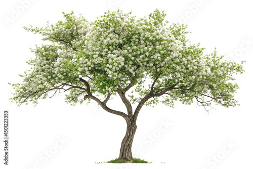 Isolated Blooming Tree Featuring Delicate White Flowers on Transparent Background ,ai generated