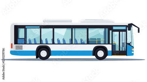 Isolated Blue and White City Bus, Public Transportation Vehicle Graphic