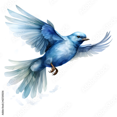 Isolated Blue Bird Watercolor on White Background - Generative AI