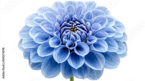 Isolated blue Dahlia macro close-up, set on white background with clipping path, ideal for clean and sophisticated floral ads