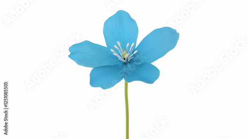 Isolated blue flower blooms on a white background with bright light. Perfect for natural beauty, decoration, and botanical concepts