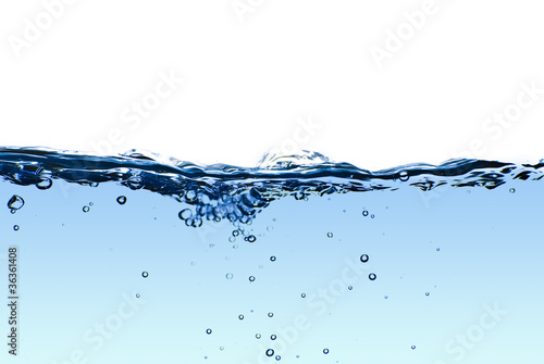 Isolated blue water splashing with bubbles and water drops - abs
