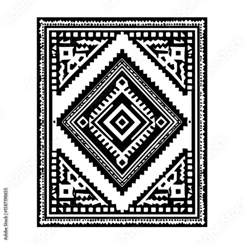 Isolated Brazilian Tribal Filled Rectangle black white on plain background