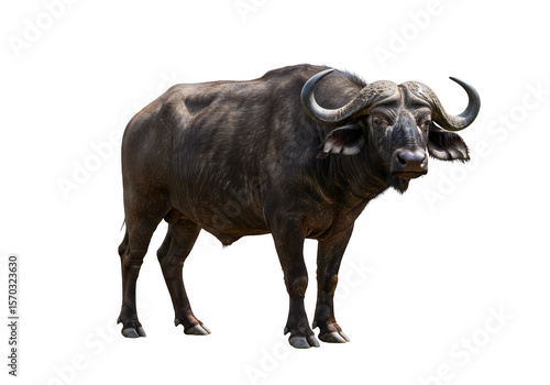 Isolated Buffalo Large African Mammal Horned Ungulate Wildlife Standing