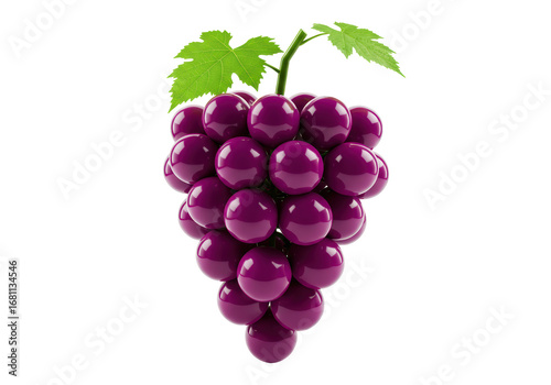 Isolated bunch of fresh purple grapes with green leaves on vine, close-up, studio shot