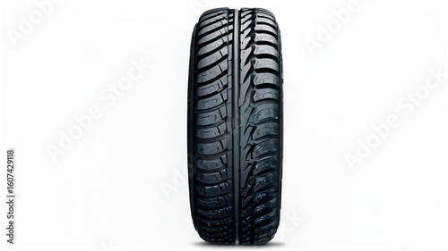 Isolated car tire with detailed tread pattern and HD rubber texture — 100% transparent background for automotive ads, racing games, or industrial designs.