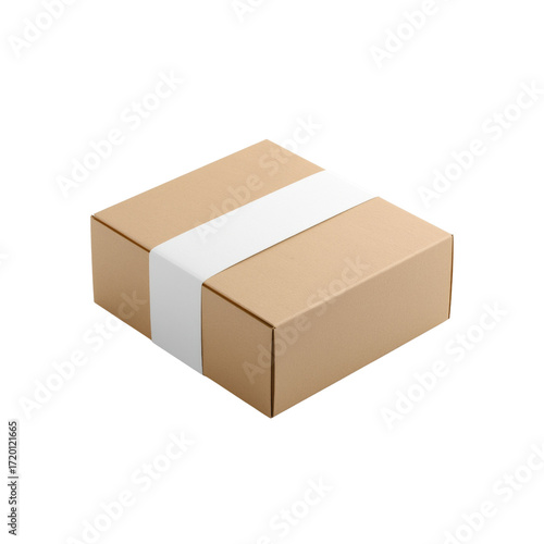 Isolated cardboard box with white tape, offering simplicity in packaging design