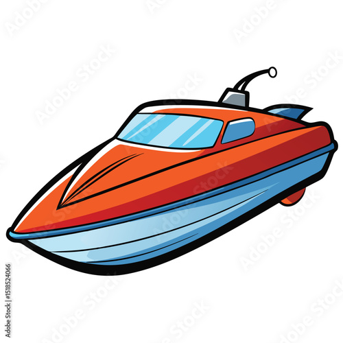Isolated Cartoon Illustration Of A Stylish Orange And Blue Speedboat On White
