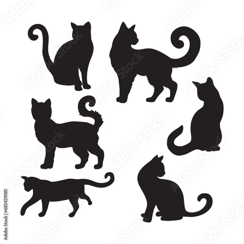 Isolated Cats on the white background. Animals silhouettes. Vector EPS 10.