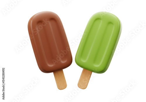 Isolated Chocolate Green Popsicles Refreshing Summer Treats