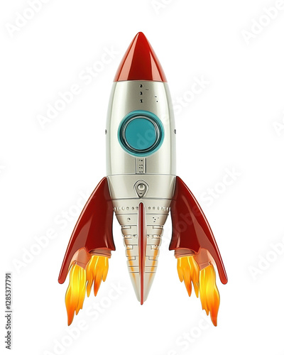 Isolated Chrome Spaceship with Red Rocket Fins: Sci-Fi Travel