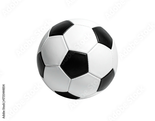 Isolated, classic black and white soccer ball, centered against a pure black background