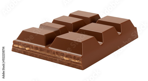 Isolated Close Up of Chocolate Bar with Wafer on Transparent Background