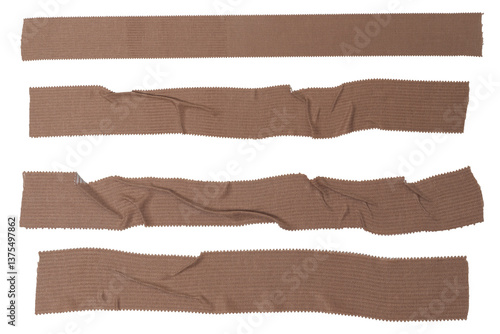 Isolated collection of torn brown bactericidal plaster stripes on white background, copy space