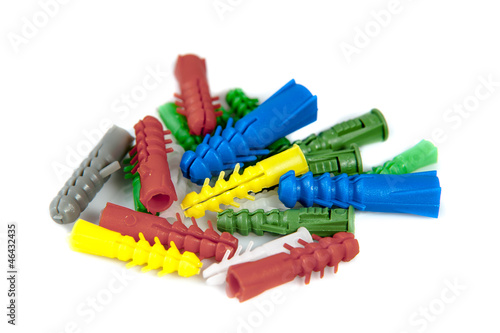 Isolated colourful wall plugs on white background