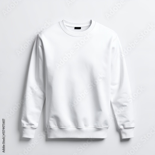 Isolated crewneck sweatshirt showcasing garment's design and construction on white background
