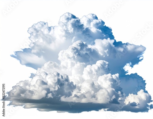 Isolated cumulus cloud, fluffy, brilliant white, ethereal, with a hint of blue on a clean transparent backdrop