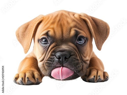 Isolated Cute Boxer Puppy with Tongue Out