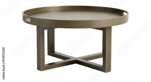 Isolated dark metallic accent table with round tray tabletop for staging furniture