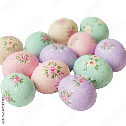 Isolated Decorative Easter Eggs with Pastel Colors and Floral Design