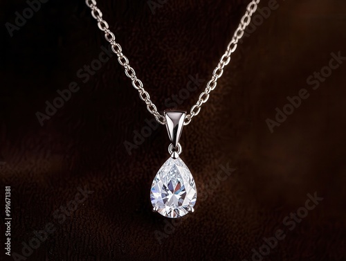 Isolated diamond necklace with a teardrop-shaped pendant, teardrop pendant, elegant detail