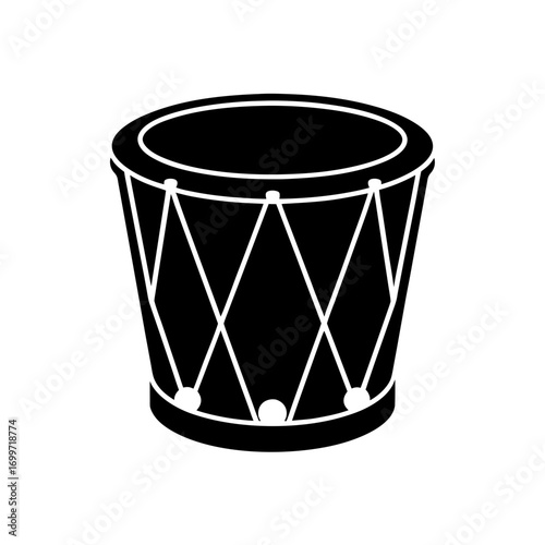 Isolated drum instrument on transparent background silhouette