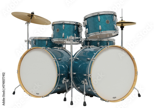 Isolated Drum Kit with Turquoise Sparkle Finish for Musical Studio Performance or Recording