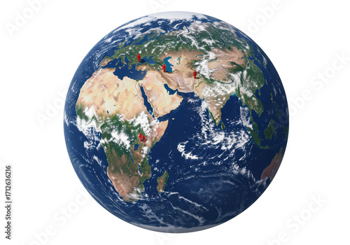 Isolated Earth planet globe model with continents, Europe, Asia and Africa highlighted
