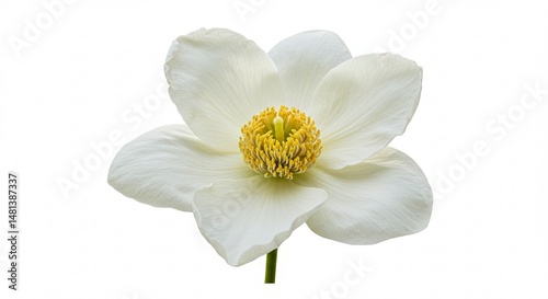 Isolated elegant white poppy flower with detailed stamen on pure background