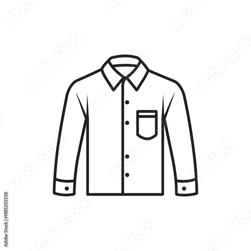 Isolated formal shirt line icon showcases front buttons and pocket on white