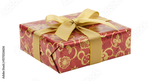 Isolated Gift Box With Golden Ribbon Red Wrapping Illustration