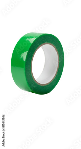 Isolated Green Adhesive Tape Roll on Transparent Background Photo