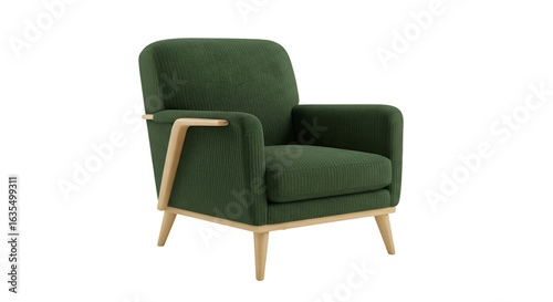Isolated Green Armchair With Wooden Frame on a Transparent Background