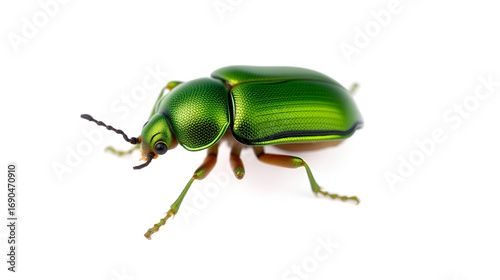 Isolated green June Beetle bug with intricate details against a plain backdrop