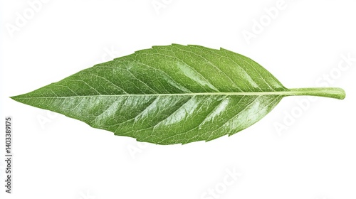 Isolated green leaf close up photo for botanical study and herbarium plant identification and leaf texture
