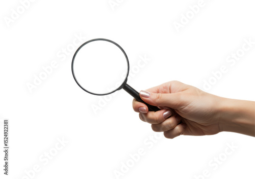 Isolated Hand Holding a Classic Magnifying Glass for Investigation